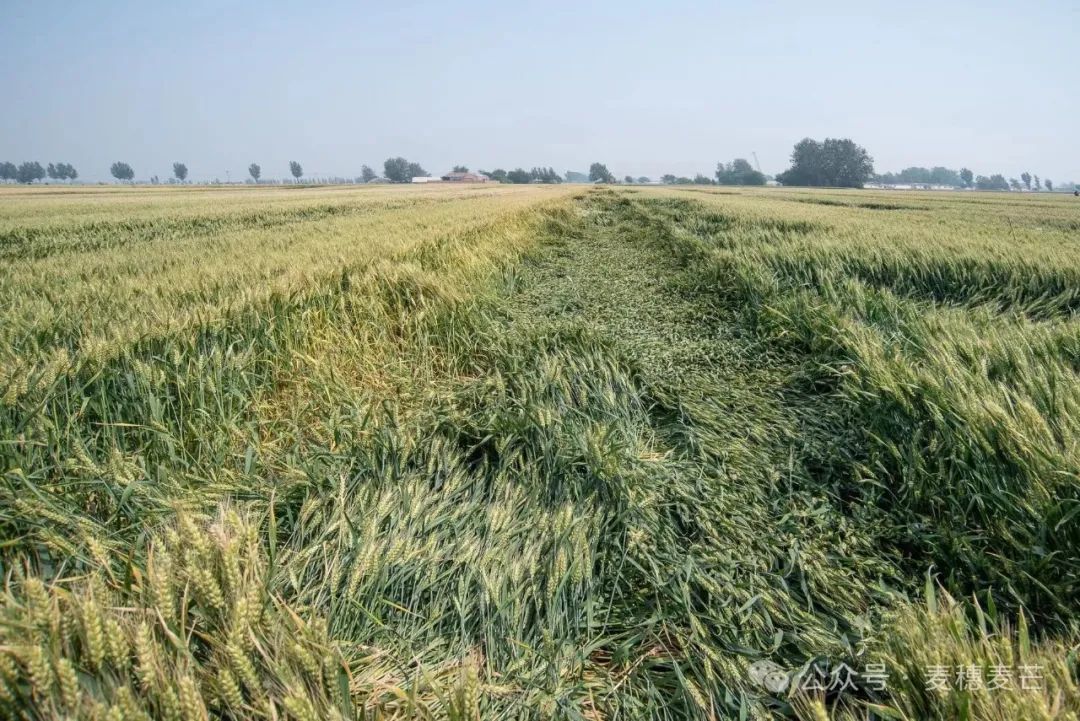 没有发生倒伏的麦田。一是麦田没有处于强对流区域,躲过了风雨袭击;二是矮秆类型小麦,其抗倒性非常强;三是旱地小麦,群体少、穗头小。从这一点看,我们选择抗倒性强的小麦当属矮秆品种,尤其是株型紧凑、茎秆韧性好的矮秆品种。